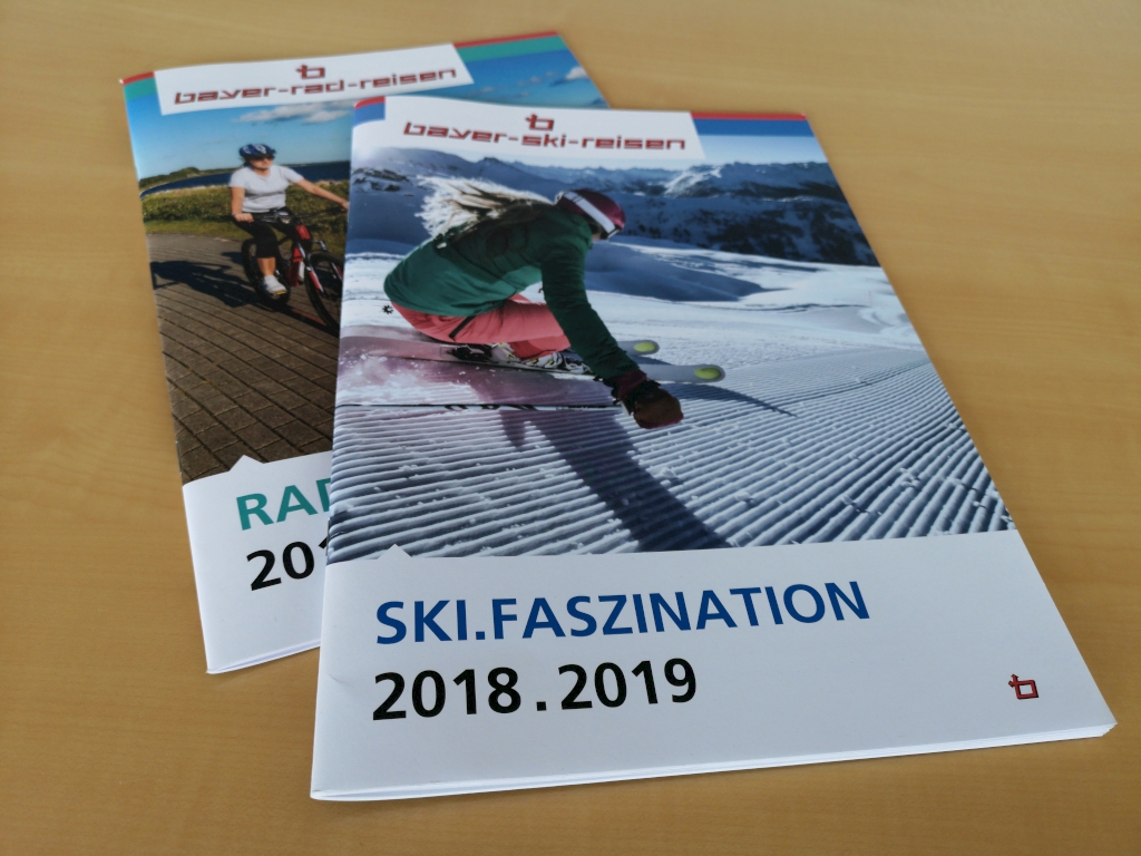 Bayer Reisen bietet jedes Jahr ein buntes Programm an Ski- und Radreisen an. Das Design und die Umsetzung kommt von der le ROUX Agentur, die Herstellung durch die le ROUX Druckerei und die Digitalisierung ergänzt die le ROUX Digital. Eine runde Sache!